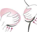 Position the cup to your desired breast angleand gently smooth the cup edges firmly to the breast with your fingertips. Remember to leave 2 to 3 finger widths between the cup and the lower breast. Repeat the same application on your other breast, being sure both sides are equal in height. If not reapply and readjust accordingly.